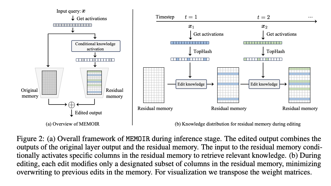 «MEMOIR использует специальный модуль памяти, который выделяет отдельные подмножества параметров для каждого редактирования и активирует их только по соответствующим запросам», — отмечают разработчики. Такой подход минимизирует перезапись старых знаний и снижает риск забывания, а структурная разреженность позволяет активировать только те параметры, которые нужны для конкретного запроса.